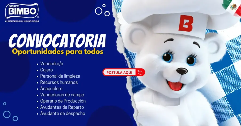 🍞 ¡Sé parte del éxito con GRUPO BIMBO! Estamos en busca de talento apasionado para unirse a nuestro equipo. Si te encanta la panadería y la innovación, ¡tu carrera comienza aquí! 💼🌟 #TrabajoEnGrupoBimbo 💪😊